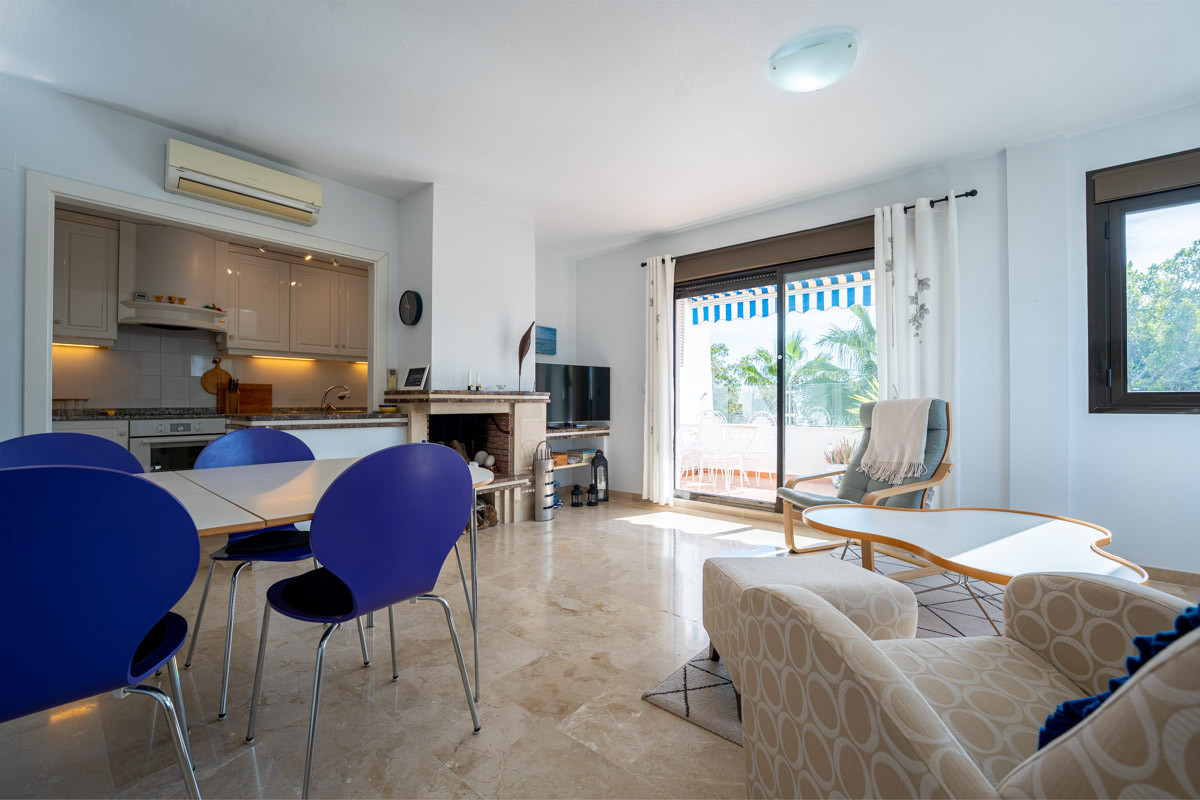 The apartment features three spacious bedrooms and two bathrooms, one of which is en suite. The open-plan kitchen connects seamlessly to the bright living and dining area, creating a warm and inviting space. From the living room, you have access to a private terrace – the perfect spot for breakfast in the sun or relaxing evenings outdoors.