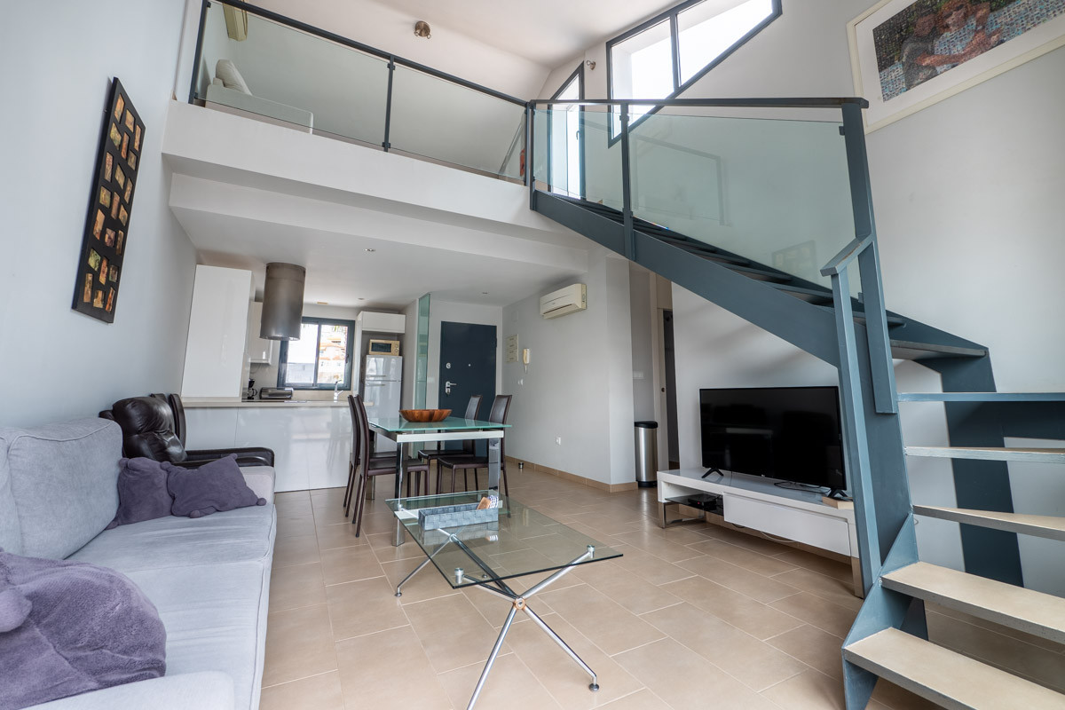 The living space extends to a mezzanine floor that leads to a stunning solarium, perfect for relaxing or entertaining with plenty of natural light and panoramic views.