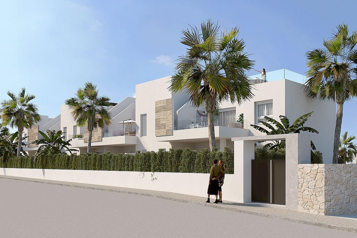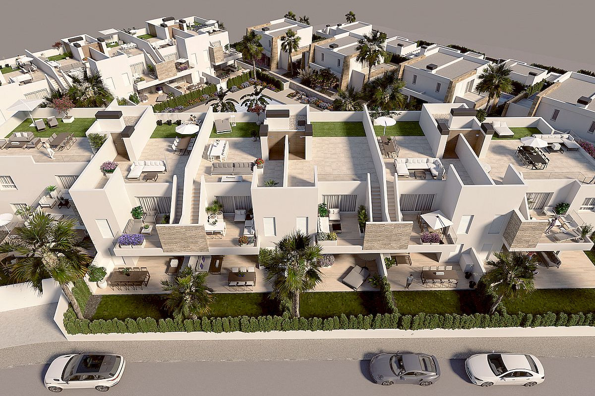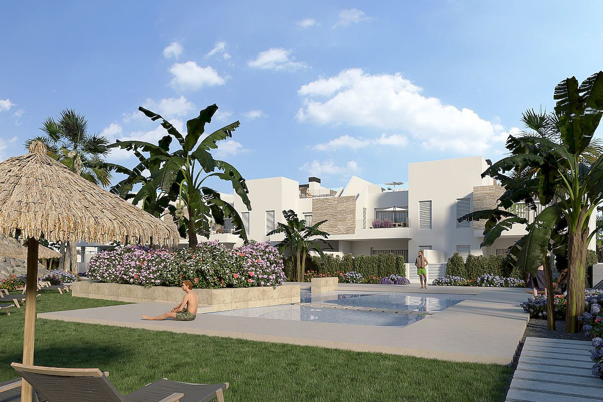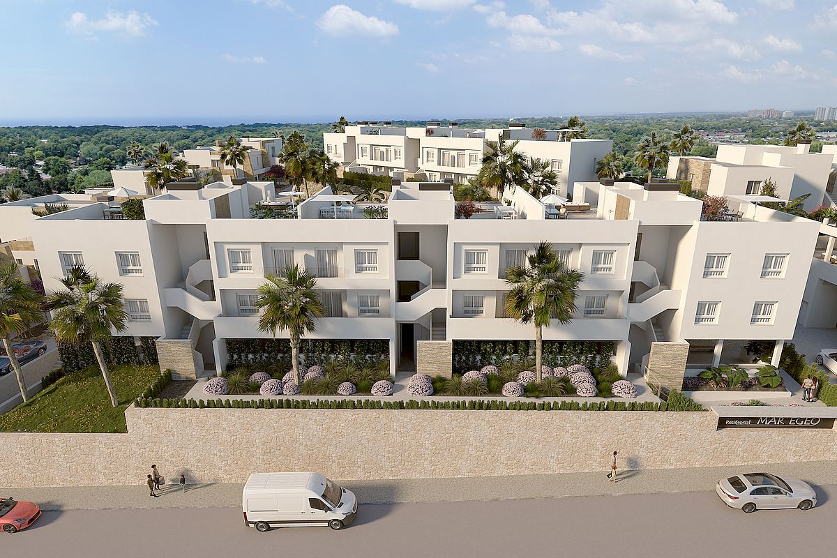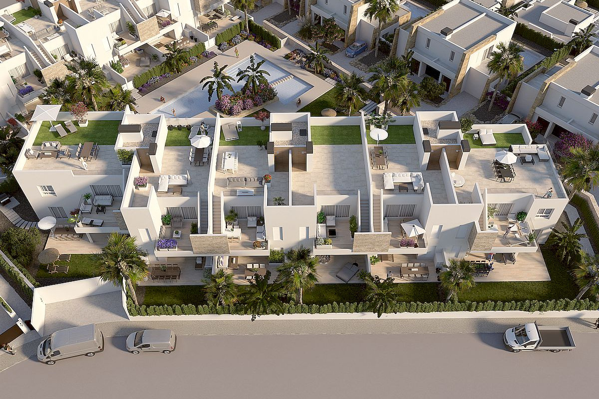 These bright newly built maisonettes are distributed over two floors. The ground floor maisonettes offer a large terrace and the top floor have an incredible solarium. There are also beautiful communal gardens, sun bathing areas and a large shared swimming pool in the residential.