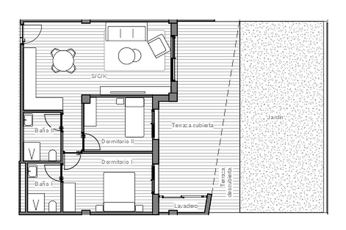 The communal swimming pool will measure an impressive 199 m2. Other communal facilities will include a children's playground and an adult outdoor exercise gym. This is a completely closed and secure residential with parking and storage rooms. Ideal for family holidays, these apartments are also large enough for permanent living.