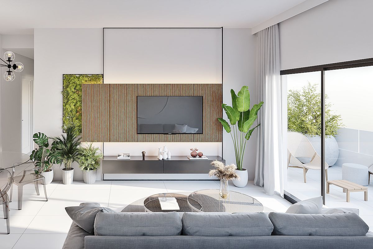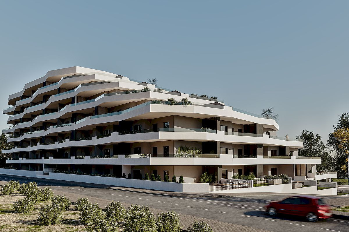 The 'Paradise resort' is a new residential with an innovative design of two and three bedroom apartments with large terraces and community pools, located in the popular village of San Miguel de Salinas.