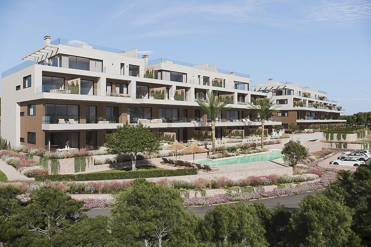 The exclusive 2 and 3 bedroom apartments are the perfect retreat to enjoy a lifestyle where comfort and design intertwine with the charm of the Mediterranean lifestyle. There area two and three-bedroom apartments on the first and second floor, with a generous living. Each apartment offers two bathrooms (one en-suite). The ground floor apartments feature a private and inviting garden, perfect for creating your own serene oasis. The penthouses with three bedrooms boast an impressive 134.90 m2 of living space, and come complete with a spacious solarium for you to enjoy. A sense of spaciousness permeates throughout the entire residence, with an open-plan layout that seamlessly combines the living, dining, and kitchen areas.