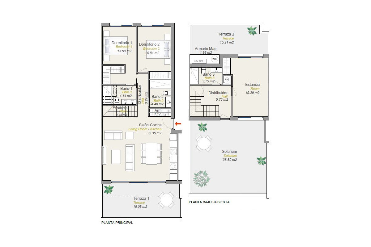 Beautiful properties has 2 bedrooms, 2 bathrooms, open plan kitchen with the lounge area, fitted wardrobes and large terrace, all in an open configuration without obstacles to the sea view. Each property has private parking space and storeroom.