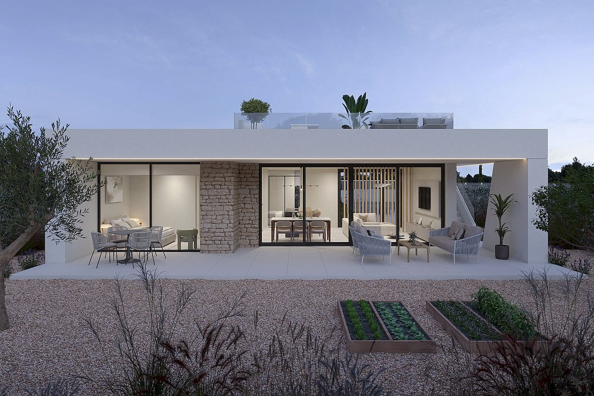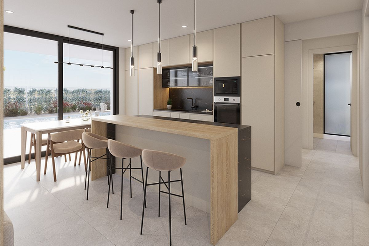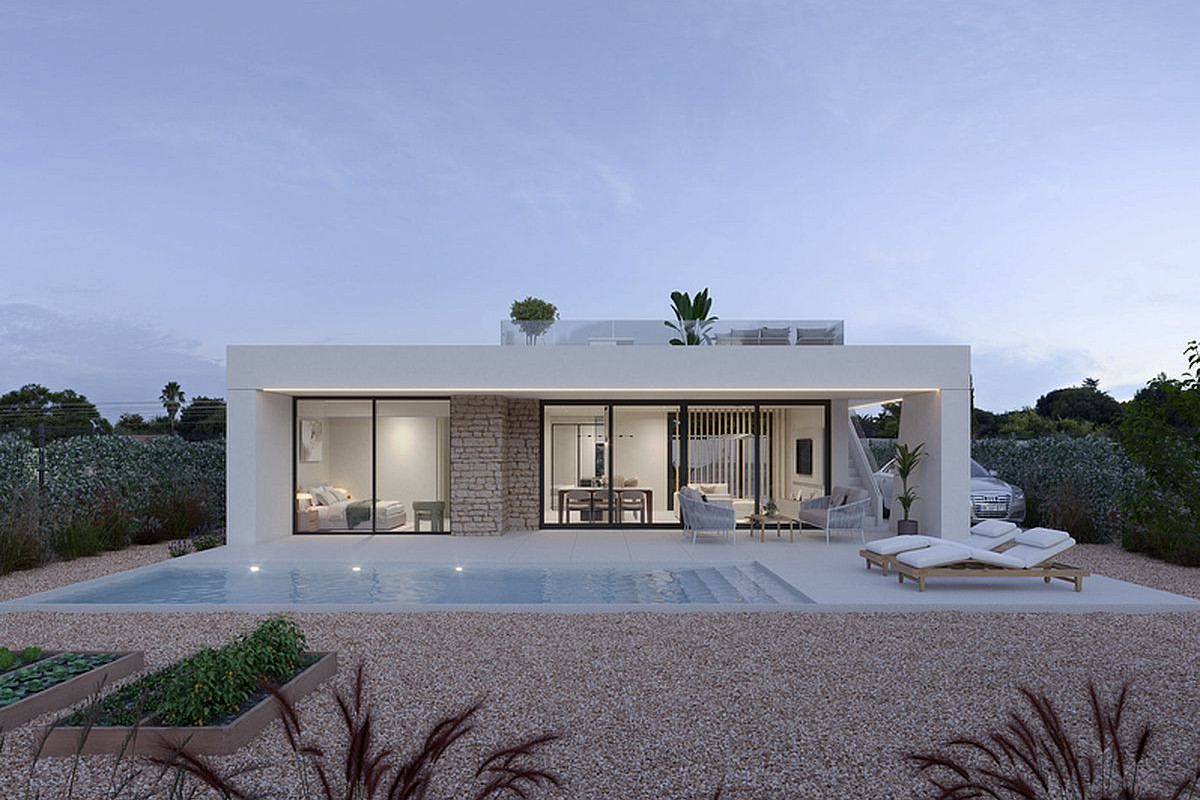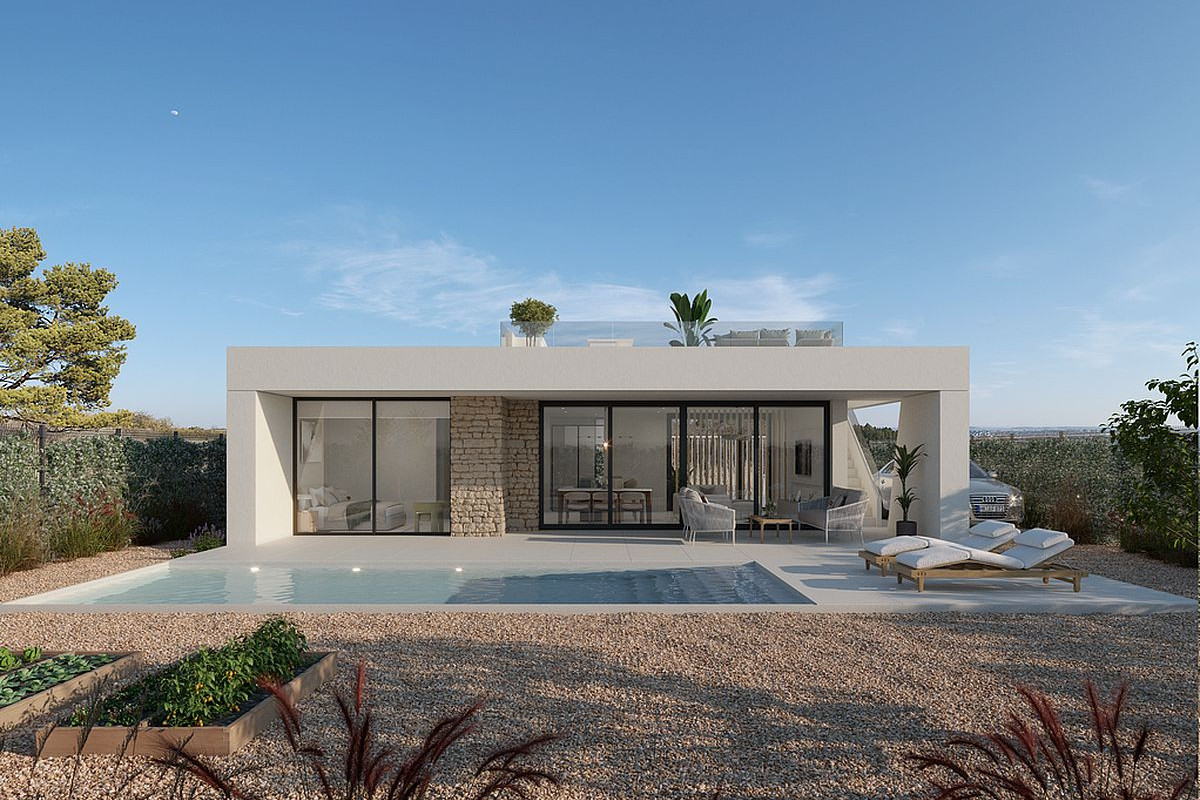 Each property offers a spacious layout with 3 bedrooms and 2 bathrooms on one floor and private rooftop solarium. With plots starting at 378 square metres and a built area of 111 square metres, these homes offer ample space for indoor and outdoor living. Private swimming pool 3x6 with outside shower is included.