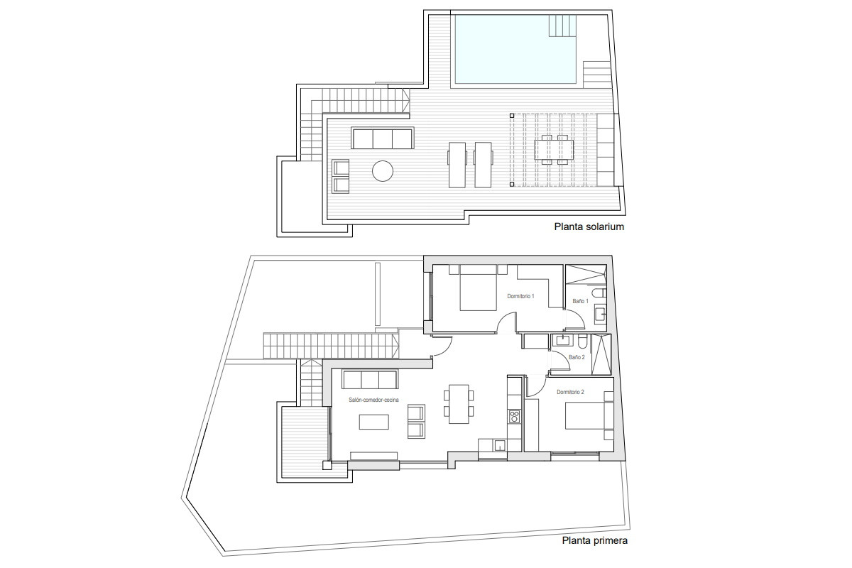 In addition it offers private pool, gated parking and garden on the ground floor. The top floor maisonette includes a solarium with sea views and private pool, perfect for enjoying the Mediterranean climate. There is a parking space included.