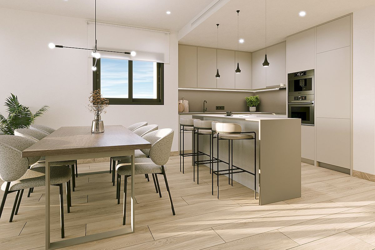 The development offers several property types to suit different preferences. Ground floor apartments include a private garden ideal for outdoor living. Middle floor units feature generous terraces perfect for relaxing or dining outdoors. Penthouse apartments offer the ultimate luxury with private rooftop solariums where you can enjoy the Mediterranean climate and panoramic views. These modern 2 and 3 bedroom apartments with 2 bathrooms, including one en-suite and a separate laundry room are designed for comfort and style. Underground parking and storage room are included.