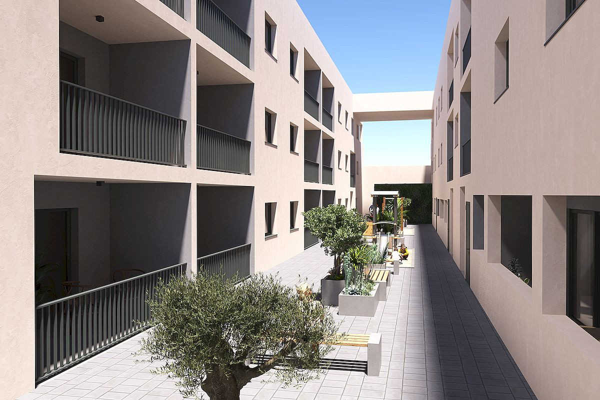 The project consists of two modern buildings separated by a landscaped communal garden area. A total of 56 contemporary apartments are available with 1, 2 or 3 bedrooms, each featuring a private terrace. Every home has been designed with comfort, aesthetics and energy efficiency in mind, using high quality materials and modern insulation systems.
