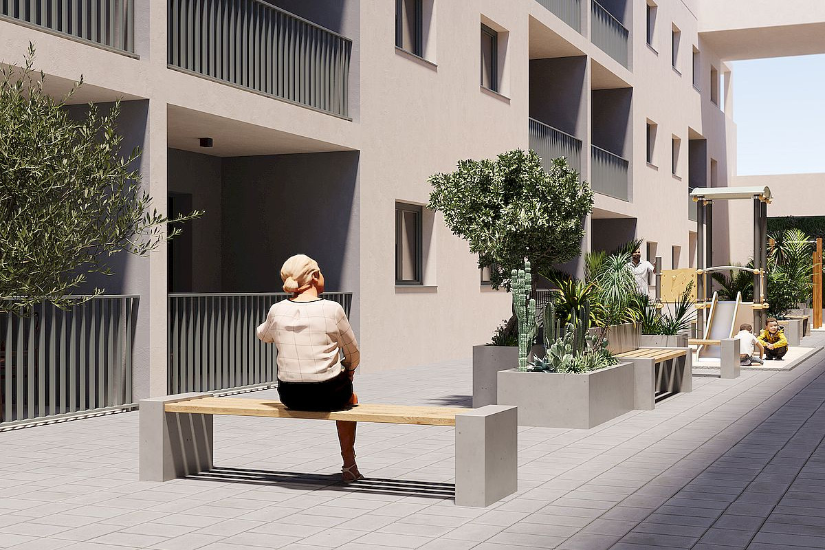 The ground floor communal space is designed as the social heart of the development, surrounded by landscaped gardens, seating areas, bicycle parking and a children's playground. It is an ideal meeting point for residents of all ages. On the rooftop, an impressive 350 m2 leisure area awaits. This space includes a 70 m2 swimming pool with separate children's splash area, pergolas, sun loungers and shaded areas, allowing residents to relax while enjoying panoramic views. The rooftop is easily accessible by one of the three lifts and includes sanitary facilities for added comfort.
